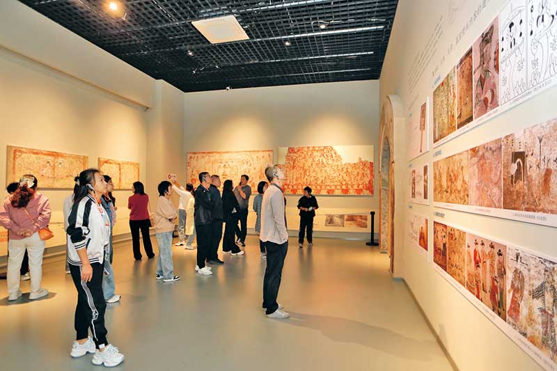 眾多游客在怡然見晉中:《晉中·春節(jié)記憶》攝影展展區(qū)觀展
